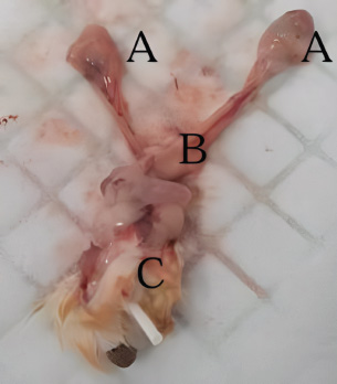 Fig. 9. (A) Oviduct; (B) uterus; (C) vagina (dorsal) and urethra (ventral). Subsequently, to find objective evidence of GSM, vaginal and urethral tissues were collected through vaginectomy when the rats reached menopause after day 21 post-ovariectomy, and histological analysis was performed. At the conclusion of the study, tissue collection through vaginectomy is essential to evaluate the response of vaginal and urethral tissues to a treatment intervention (Rejeki et al., 2018; Ye et al., 2018). ConclusionGSM is a condition that significantly impacts the quality of life of menopausal women. Consequently, the development of novel therapeutic modalities or the improvement of current therapies remains essential. Therefore, comprehensive and precise protocols for the development of suitable animal models are required to guarantee the safety and efficacy of the therapeutic modalities. AcknowledgmentsThe authors would like to express their gratitude to the Animal Testing Laboratory at the Faculty of Medicine, Sebelas Maret University, for providing research facilities and animal care services. The authors would also like to thank Hanifah Karim, MD, for her technical support as a research assistant and contributions to this manuscript’s editing. Conflict of interestThe authors declare no conflict of interest. FundingThis study received no funding or external assistance. Authors’ contributionsConception and design: A.A; administrative support: A.A and S; collection and assembly of data: A.A, S, I.N, and U.R.B; data analysis and interpretation: A.A, P.D, E.P.P, and B.W; manuscript writing: all authors; and final approval of the manuscript: all authors. ReferencesHerrera-Pérez, J.J., Hernández-Hernández, O.T., Flores-Ramos, M., Cueto-Escobedo, J., Rodríguez-Landa, J.F. and Martínez-Mota, L. 2024. The intersection between menopause and depression: overview of research using animal models. Front. Psychiatry 15, 1408878; doi:10.3389/fpsyt.2024.1408878 Ho, M.H., Heydarkhan, S., Vernet, D., Kovanecz, I., Ferrini, M.G., Bhatia, N.N. and Gonzalez-Cadavid, N.F. 2009. Stimulating vaginal repair in rats through skeletal muscle–derived stem cells seeded on small intestinal submucosal scaffolds. Obstet. Gynecol. 114(2), 300–309; doi:10.1097/aog.0b013e3181af6abd Ismail, A. and Bibi, I. 2024. Exploring genitourinary syndrome of menopause: analysis of prevalence, determinants, and health impacts in Pakistani women. Pak. Biomed. J. 7, 16–20; doi:10.54393/pbmj.v7i02.1035 Khajuria, D.K., Razdan, R. and Mahapatra, D.R. 2012. Description of a new method of ovariectomy in female rats. Rev. Bras. Reumatol. 52(3), 462–470. Khapre, S., Deshmukh, U. and Jain, S. 2022. The impact of soy isoflavone supplementation on the menopausal symptoms in perimenopausal and postmenopausal women. J. Midlife Health 13(2), 175–184; doi:10.4103/jmh.jmh_190_21 Koebele, S.V., Bernaud, V.E., Northup-Smith, S.N., Willeman, M.N., Strouse, I.M., Bulen, H.L., Schrier, A.R., Newbern, J.M., DeNardo, D.F., Mayer, L.P., Dyer, C.A. and Bimonte-Nelson, H.A. 2023. Gynecological surgery in adulthood imparts cognitive and brain changes in rats: a focus on hysterectomy at short-, moderate-, and long-term intervals after surgery. Horm. Behav. 155, 105411; doi:10.1016/j.yhbeh.2023.105411 Medina-Contreras, J., Villalobos-Molina, R., Zarain-Herzberg, A. and Balderas-Villalobos, J. 2020. Ovariectomized rodents as a menopausal metabolic syndrome model. A minireview. Mol. Cell Biochem. 475(1–2), 261–276; doi:10.1007/s11010-020-03879-4 Meeta, M., Digumarti, L., Agarwal, N., Vaze, N., Shah, R. and Malik, S. 2020. Clinical practice guidelines on menopause: an executive summary and recommendations: Indian menopause society 2019–2020. J. Midlife Health 11(2), 55; doi:10.4103/jmh.jmh_137_20 Nascimento-Gonçalves, E., Faustino-Rocha, A.I., Seixas, F., Colaço, B., Ferreira, R. and Oliveira, P.A. 2024. Successful hormonal and chemical induction of prostate cancer in a rat model: practical guidelines. Vet. Res. Forum 15(9), 445–453; doi:10.30466/vrf.2023.1999343.3838 Rejeki, P.S., Putri, E.A.C. and Prasetya, R.E. 2018. Ovariectomy in rats and mice. Surabaya, Indonesia: Airlangga University Press. Sarmento, A.C.A., Costa, A.P.F., Vieira-Baptista, P., Giraldo, P.C., Eleutério, Jr., J. and Gonçalves, A.K. 2021. Genitourinary syndrome of menopause: epidemiology, physiopathology, clinical manifestation and diagnostic. Front. Reprod. Health 3, 779398; doi:10.3389/frph.2021.779398 Soewondo, S.S., Parawansa, S.S.R. and Amri, U. 2023. The concept of euthanasia in various countries and its reforms in Indonesia. Media Iuris 6(2), 231–254; doi:10.20473/mi.v6i2.43841 Suckow, M.A., Hankenson, F.C., Wilson, R.P. and Foley, P.L. 2019. The laboratory rat. Cambridge, MA: Academic Press. Thangavel, P., Puga-Olguín, A., Rodríguez-Landa, J.F. and Zepeda, R.C. 2019. Genistein as potential therapeutic candidate for menopausal symptoms and other related diseases. Molecules 24(21), 3892; doi:10.3390/molecules24213892 Vodegel, E.V., Guler, Z., Ras, L., Mackova, K., Groeneveld, A.C.H.M., Bezuidenhout, D., Deprest, J., Jeffery, S.T. and Roovers, J.W.R. 2023. Vaginal changes after ovariectomy in ewes: a large animal model for genitourinary syndrome of menopause. Int. J. Gynaecol. Obstet. 162(3), 1042–1049; doi:10.1002/ijgo.14816 Ye, Y., Liu, C.-Z., Wang, R., Zhang, Y.-W., Zhang, B., Cui, Y., Liu, X.-W. and Huang, S.-M. 2018. A new animal model for menopausal transition: combination of ovariectomy and empty bottle stimulation. Gynecol. Endocrinol. 34(10), 840–844; doi:10.1080/09513590.2018.1451835 Yousefzadeh, N., Kashfi, K., Jeddi, S. and Ghasemi, A. 2020. Ovariectomized rat model of osteoporosis: a practical guide. EXCLI J. 19, 89–107; doi:10.17179/excli2019-1990 | ||