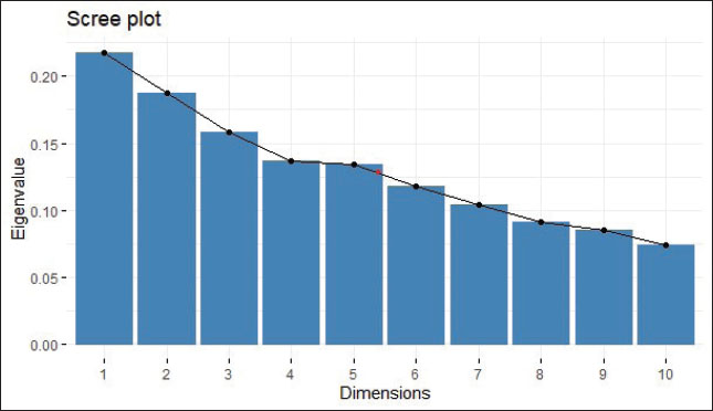 Fig. 2. Contribution of the first 10 dimensions to the total inertia.