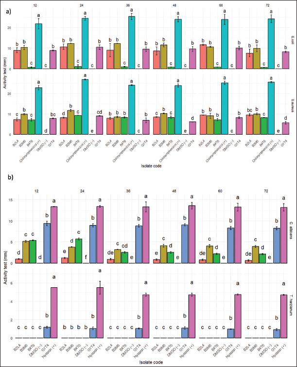 Fig. 4. (a) antibacterial and (b) antifungal activity tests that cause disease (mm). Table 2. Results of query cover and percent identify.