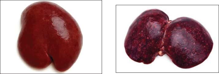 Fig. 3. Enlarged, dark reddish congested liver.
