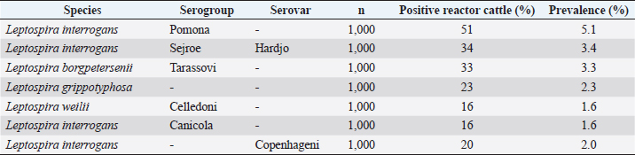 Table 3. Leptospirosis prevalence by serogroups and serovars in cattle from Sotaquirá, Boyacá.