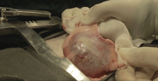 Fig. 3. Surgically removed left caudal lung lobe. We can observe the saccule with a highly vascularized wall. The patient was kept in Intensive Care Unit (ICU) for 24 hours. The patient recovered well and was discharged but had to return daily for clinical evaluation. Four days after the surgery, the patient decompensated from its previous cardiopathy, leading to a severe cardiogenic pulmonary edema. The patient was brought to the ICU but did not survive. DiscussionThis study reports the case of a bitch with a large pulmonary emphysemic cyst and a bronchioalveolar adenocarcinoma, a rare case in the veterinary literature. We could not determine if the build-up of air was due to the malignancy or if the malignancy was secondary to the bulla. The bulla may cause the malignancy because of its poor internal ventilation, which can facilitate the deposition of some carcinogens, as stated before (Hanaoka et al., 2002; Bello et al., 2021). As the patient presented a setting of bronchopathy, we suspect the bulla is secondary to the bronchitis. The radiography and tomography findings corroborate the description of pulmonary bullae by other authors (Godwin et al., 1980; Lipscomb et al., 2003; Park et al., 2016; Bello et al., 2021), who have observed sizes larger than 1 cm and complete destruction of the pulmonary tissue. In this particular patient, the bulla had thick and irregular walls, a characteristic seldomly described (Lamb and Neiger, 2000), and which may not be characterized as a malignant lesion. The bulla was located in the left caudal lobo, as also reported by Park et al. (2016). In this study, we neither observe nodal or pleural damage, nor the presence of small metastatic foci. As such, we ruled out the diagnosis of cancer (Park et al., 2016). In a macroscopic analysis, we detected neovascularization, both in the internal and external cyst walls (Park et al., 2016). The imaging results were not informative for determining a diagnosis of pulmonary bulla-associated malignancy, despite the higher resolution of the tomography (Waters et al., 1998; Nemanic et al., 2006). Pathological examinations before the surgery were not performed because of the risk they could cause the rupture the bulla, as reported before (Allison, 1947; Yoshikawa et al., 2011). We chose to surgically remove the bulla because of its large size (Godwin et al., 1980; Klingman et al., 1991; Richardson, et al., 1996). Afterwards, the removed material was sent for histopathological analysis, which determined the diagnosis of bronchioalveolar carcinoma. Other dogs presenting similar clinical characteristics were diagnosed with bronchioalveolar carcinoma before (Puerto et al., 2002; Park et al., 2016). Regarding the histological pattern, acinar and papillary adenocarcinomas are the most common ones (Caprioli et al., 2018). Caprioli et al. (2018) reported that solid tumors are considered rare in pets. A previous study done on 18 primary pulmonary adenocarcinomas in dogs, reported that only 1 had a solid pattern (Caprioli et al., 2018). Other histopathologic findings included granulation tissue with airway dilation, granulomas, pleuritis, thromboembolism, and pneumonia, all of which have been reported as underlying causes of spontaneous pneumothorax in dogs (Au et al., 2006). Several authors state that prognosis of solid and bullous carcinomas is similar and that the presence of a pulmonary bulla, when not neoplastic, can be an important risk factor for the development of pulmonary carcinoma (Hanaoka et al., 2002; Yoshikawa et al., 2011). ConclusionMalignancy should be described as a differential diagnosis in cases of giant bullae, even though it cannot be diagnosed by imaging techniques. Tomographic examination plays an important role because it is the only technique where we can assess nodal and pleural damage and small metastatic foci. There is indication for surgery in cases of giant bullae and histopathological examinations of the removed region should be performed for a definitive diagnosis. Conflict of interestThe Authors declares that there is no conflict of interest. ReferencesAllison, P.R. 1947. Giant bullous cysts of the lung. Thorax. 2, 169–175. Au, J.J., Weisman, D.L., Stefanacci, J.D. and Palmisano, M.P. 2006. Use of computed tomography for evaluation of lung lesions associated with spontaneous pneumothorax in dogs: 12 cases (1999–2002). J Am Vet Med Assoc. 228(5), 733–737. Aydin, Y., Toplu, N. and Alkan, Z. 1997. Squamous cell carcinoma of the lung in a dog. Aust. Vet. J. 757, 488–490. Bello, A.M., Anselmi, C., Frau, M., Berman, K.G., Novellas, R., Espada, Y., Longley, M.J. and Dhumeaux, M.P. 2021. Pulmonary carcinoma associated with cystic airspaces in two dogs. J. Small Anim. Pract. 63, 486–491. Bonath, K.H. 1996. Thoracic wall closure. In Complications in Small Animal Surgery. Diagnosis, Management, Prevention. Eds., Lipowitz, J. M, Caywood, D, Newton, C.D. and Schwartz, A. Baltimore, MD: Williams and Wilkins, pp: 229–243. Brodey, R.S. and Craig, P.H. 1965. Primary pulmonary neoplasms in the dog: a review of 29 cases. J. Am. Vet. Med. Assoc. 147, 1628–1643. Caprioli, R.A., Argenta, F.F., Hammerschmitt, M.E., Pereira, P.R., Lorenzo, C., Pavarini, S.P., Driemeier, D. and Sonne, L. 2018. Achados patológicos e imuno-histoquímicos de neoplasmas pulmonares primários em caninos na região metropolitana de Porto Alegre, Rio Grande do Sul. Pesq. Veterin. Bras. 38(6), 1151–1158. Dungworth, D.L., Hauser, F.F., Hahn, D.W., Wilson, T.T. and Harkema, J.R. 1999. Histological classification of tumors of the respiratory system of domestic animals, Washington, DC: WHO 2nd series, pp: 69. Gadkowski, L.B. and Stout, J.E. 2008. Cavitary pulmonary disease. Clin. Microbiol. Rev. 21, 305–333. Gafoor, K., Patel, S., Girvin, F., Gupta, N., Naidich, D., Machnicki, S., Brown, K.K., Mehta, A., Husta, B., Ryu, J.H., Sarosi, G.A., Franquet, T., Verschakelen, J., Johkoh, T., Travis, W. and Raoof, S. 2018. Cavitary lung d
