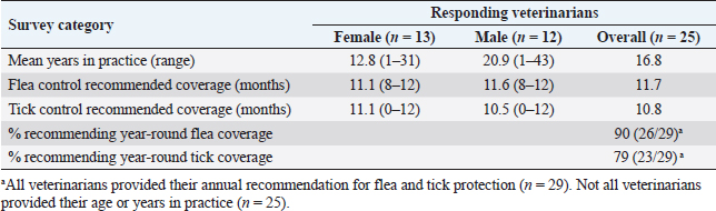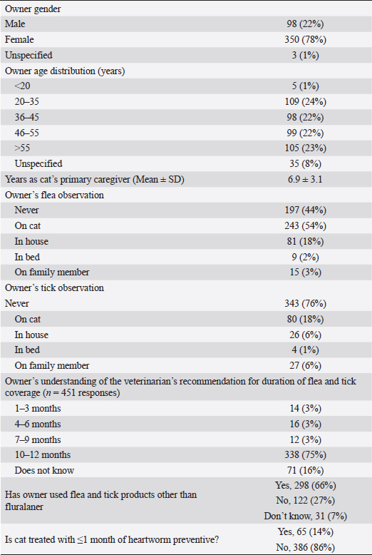 Table 2. Demographics and ectoparasite observation experience of cat owners responding to a US survey.