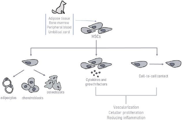 Open Vet. J.. 2021; 11(2): 188-202 Open Veterinary Journal, (2021), Vol. 11(2): 188–202 Review Article Clinical application of mesenchymal stem cells therapy in musculoskeletal injuries in dogs—a review of the scientific literatureInês E. Dias1,2, Diogo F. Cardoso1, Carla S. Soares3,4, Luís C. Barros2,3, Carlos A. Viegas1,6,7,8, Pedro P. Carvalho2,5* and Isabel R. Dias1,6,7,81Department of Veterinary Sciences, ECAV, UTAD, Vila Real, Portugal 2CIVG—Vasco da Gama Research Center, Vasco da Gama University School, Av. José R. Sousa Fernandes, Campus Universitário, Coimbra, Portugal 3VetLamaçães Small Animal Clinic, Braga, Portugal 4CECAV – Animal and Veterinary Research Centre (CECAV), University of Trás-os-Montes and Alto Douro (UTAD), Vila Real, Portugal 5Vetherapy, 479. St, San Francisco, CA 94103, USA 63B’s Research Group, I3Bs – Research Institute on Biomaterials, Biodegradables and Biomimetics, University of Minho, Headquarters of the European Institute of Excellence on Tissue Engineering and Regenerative Medicine, AvePark, Parque de Ciência e Tecnologia, Zona Industrial da Gandra, Guimarães, Portugal 7ICVS/3B’s - Government Associate Laboratory, CITAB – Center for the Research and Technology of Agro-Environmental and Biological Sciences, University of Minho, 4805-017 Braga/Guimarães, Portugal 8CITAB – Center for the Research and Technology of Agro-Environmental and Biological Sciences, UTAD, Vila Real, Portugal *Corresponding Author: Pedro P. Carvalho. CIVG—Vasco da Gama Research Center, Vasco da Gama University School, Campus Universitário, Lordemão, Portugal. Email: pedro.carvalho [at] euvg.pt Submitted: 10/02/2021 Accepted: 25/03/2021 Published: 12/04/2021 © 2021 Open Veterinary Journal