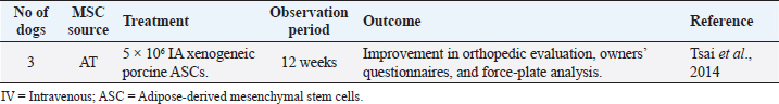 Table 7. Preclinical trials carried out with MSCs in canine hip OA.