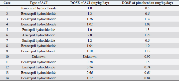 Table 2. Type and dose of angiotensin-converting enzyme inhibitors and pimobendane in all cases.