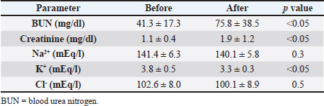 Table 4. Renal function parameters before and after HTCZ administration.