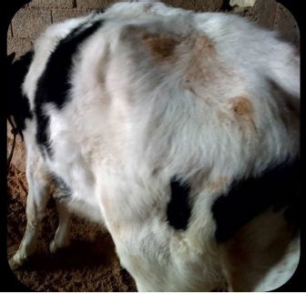 Fig. 1. A young bull suffering from urachal abscess. Loss of weight, rough coat and distended abdomen with arched back. DiscussionThe urachus, as previously mentioned, arises from the upper part of the bladder and both of them arise from the ventral part of the cloaca (Begg, 1930). There are five types of urachal abnormalities: the patent urachus; in which the entire tubular structure fails to close, the urachal sinus; in which both ends of the canal close leaving an open central portion, the urachal cyst; which drains proximally into the umbilicus, the vesicourachal diverticulum; where the distal communication to the bladder persists, and the alternating sinus: which can drain to either bladder or umbilicus (Wilson et al., 2019). The incidence of urachus in human adults is unknown but it is considered rare, while no reports are available about it in domesticated animals (Wilson et al., 2019). Manners of presentation of urachal anomalies in newly born animal differ from those understood in adult animals. In adults, the commonest form is the urachal cyst, with no drainage and the abscess being the usual mode of presentation. The septic contamination of this structure could be through the lymphatics and /or as ascending from the urinary bladder infections (Qureshi et al., 2013). Urachus cyst is usually asymptomatic until it becomes infected (Qureshi et al., 2013). The treatment of choice for urachal cyst is not always performed by complete excision as with this case. Earlier reports suggested that appropriate antibiotic therapy of infected urachus after complete drainage gave good results (Lipskar et al., 2010). In the present case, we adopted an operative procedure for complete drainage of the cyst with a good management and administration of broad-spectrum antibiotics post-surgery.